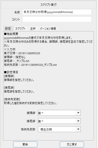 「年月日時分秒取得(yyyymmddhhmmss)」を使用する(Ver.7.1.0以降)
