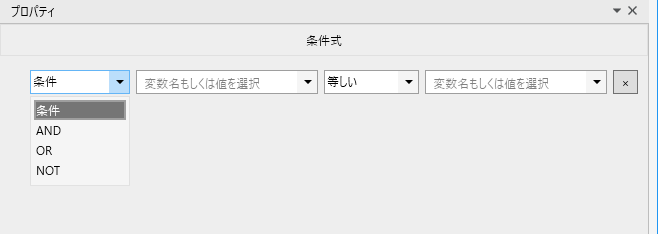 条件のプルダウンをクリックすると「条件」「AND」「OR」「NOT」が表示されます。